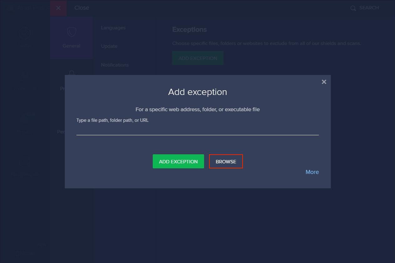 ستحتاج إلى إضافة VPN Unlimited إلى الاستثناءات بشكل عام وإعداد Avast Firewall. أولاً، دعنا نتعرف على كيفية القيام بذلك في الإعدادات العامة: