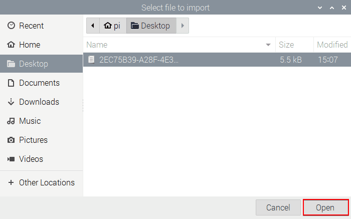 6. Elija el archivo de configuración de OpenVPN® que se descargó previamente de su Oficina del usuario y haga clic en Open (Abrir).