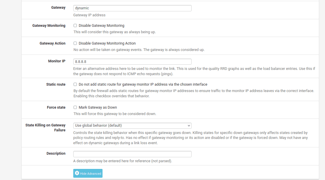 ۱۸. فیلدهای دروازه pfSense VPN را همانطور که در زیر نشان داده شده تکمیل، و روی Save (ذخیره) و Apply Changes (اعمال تغییرات) کلیک کنید.
