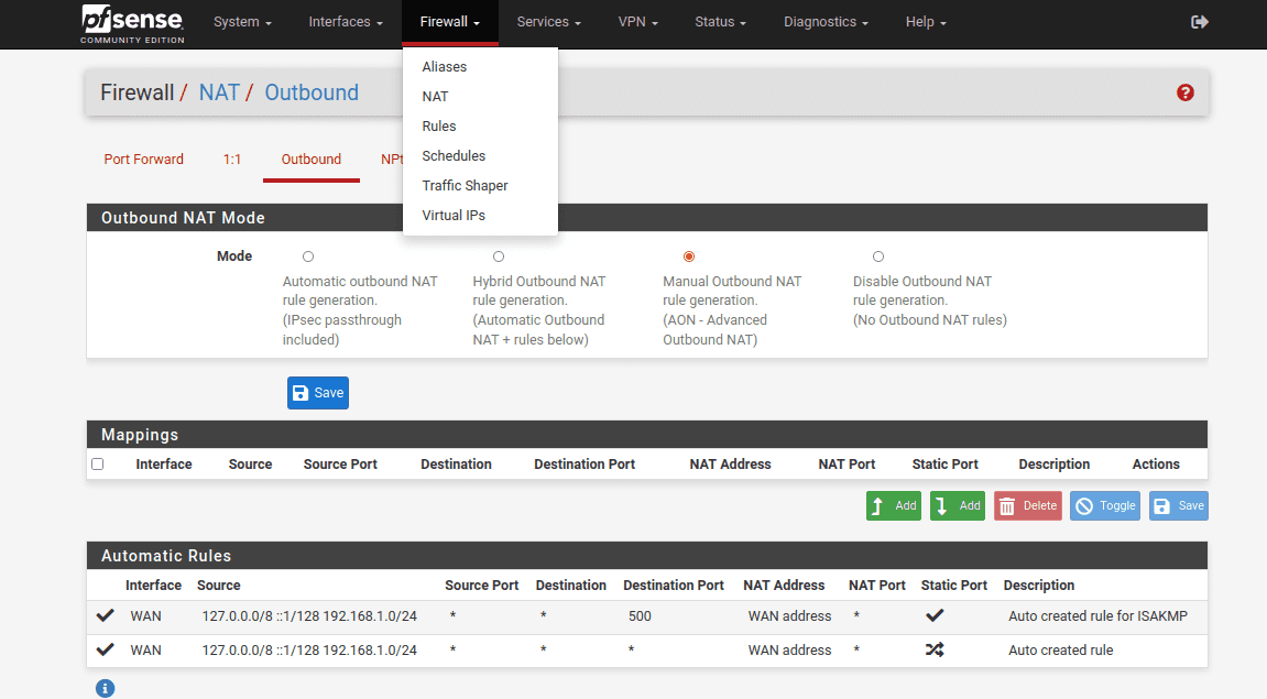 ۲۲. سپس، به Firewall (فایروال) > NAT (نَت) > Outbound (خروجی) بروید.